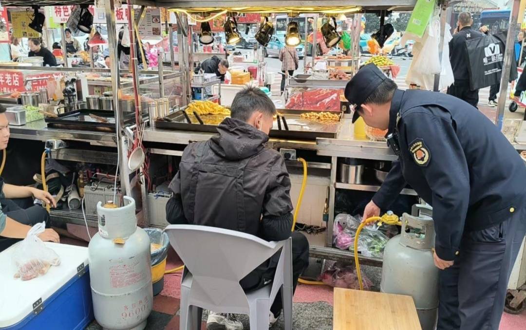 排查中,城管队员深入辖区餐饮门店、临时菜场、夜市摊点等燃气使用场所,重点检查了燃气瓶是否合规、是否存在违规加热或横放气瓶现象、燃气阀是否符合国家标准、燃气软管是否存在腐蚀老化及长度过长、燃气报警器是否规范使用等关键环节,针对检查中发现的如使用不合规燃气阀、燃气软管过长等安全隐患,工作人员已现场责令其限期整改。同时,城管队员积极向商户宣传普及燃气安全使用知识,强调必须高度重视燃气安全,认真做好日常自检自查工作,确保安全用气。