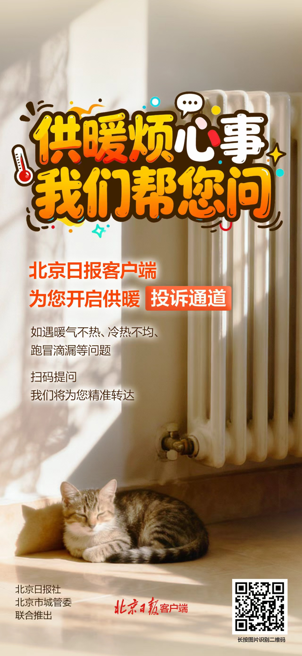 当您家里出现室温不达标、不同房间冷热不均、暖气片或管道出现渗漏异响等烦心事,可通过北京日报客户端反映供热诉求问题。我们会第一时间将您在供暖期间遇到的问题、诉求与建议,精准转达至相应的供热主管部门与单位,推动问题尽快解决。如果您想要了解咨询相关供暖政策,我们将邀请专业人士为您答疑解惑。