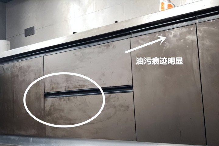 然而,当真正开始使用后,你便会发现,在厨房这一环境中,肤感膜橱柜极易留下手印。特别是当手上沾有脏水或油污,且柜门未设计拉手时,煮一顿饭下来,橱柜的清洁问题着实令人头疼不已。那些手印痕迹,即便用干净的湿毛巾擦拭,也难以完全清除。